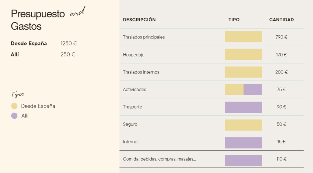 El presupuesto total del viaje fue de 1.500 € por persona, incluyendo absolutamente todo —sí, hasta el último pad thai. De ese total, unos 1.250 € los llevábamos ya pagados desde España (vuelos, alojamientos, transportes y seguro), y allí gastamos aproximadamente 250 € en destino, según Tricount.