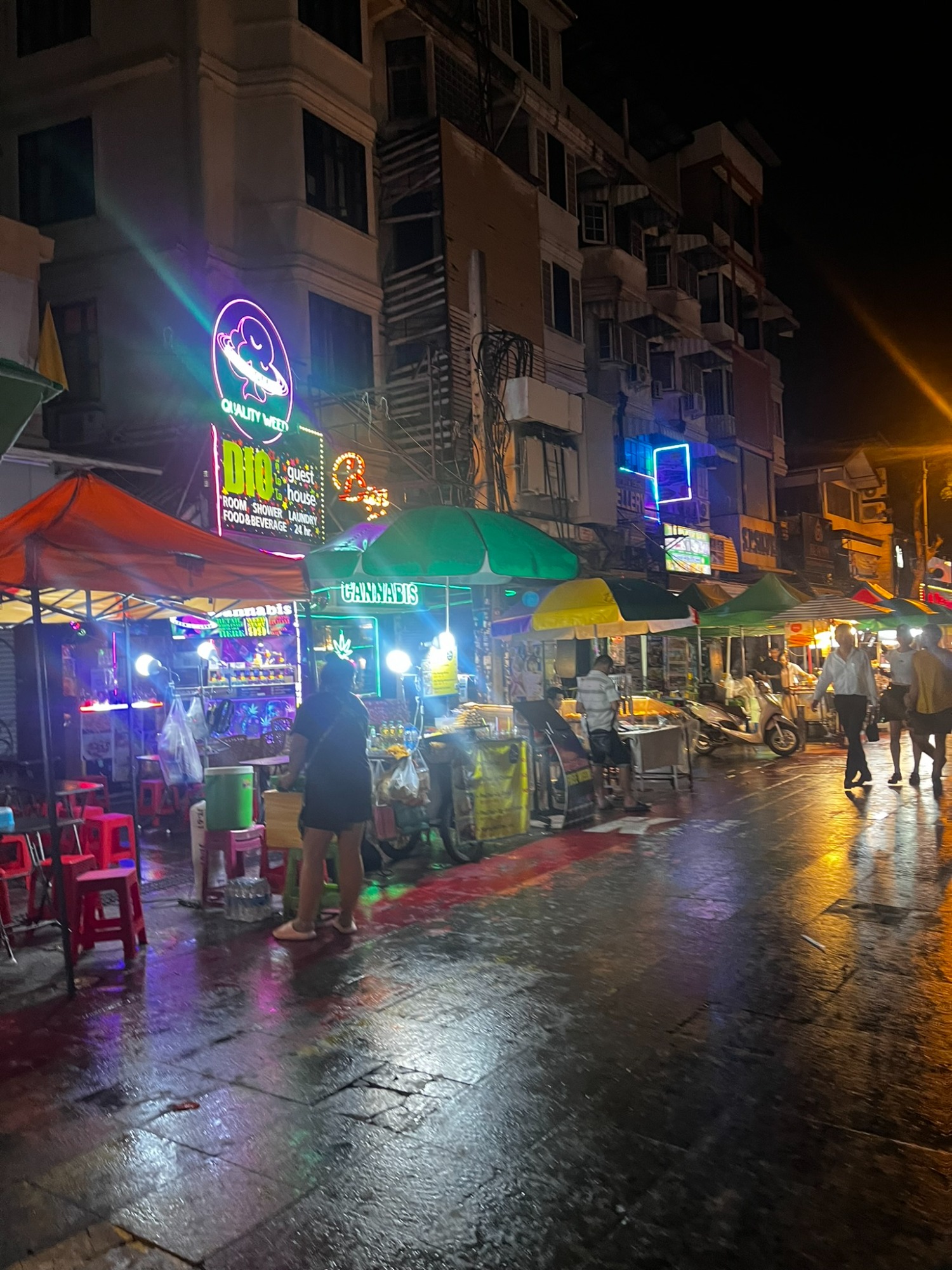 Allí disfrutamos de comida callejera, charlas interminables y uno de los espectáculos de fuego típicos de la zona, que hacen que el ambiente sea aún más especial.